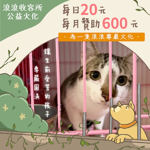 - 為所有死亡的流浪動物提供免費的身後安葬服務,確保牠們以有尊嚴的方式離開。